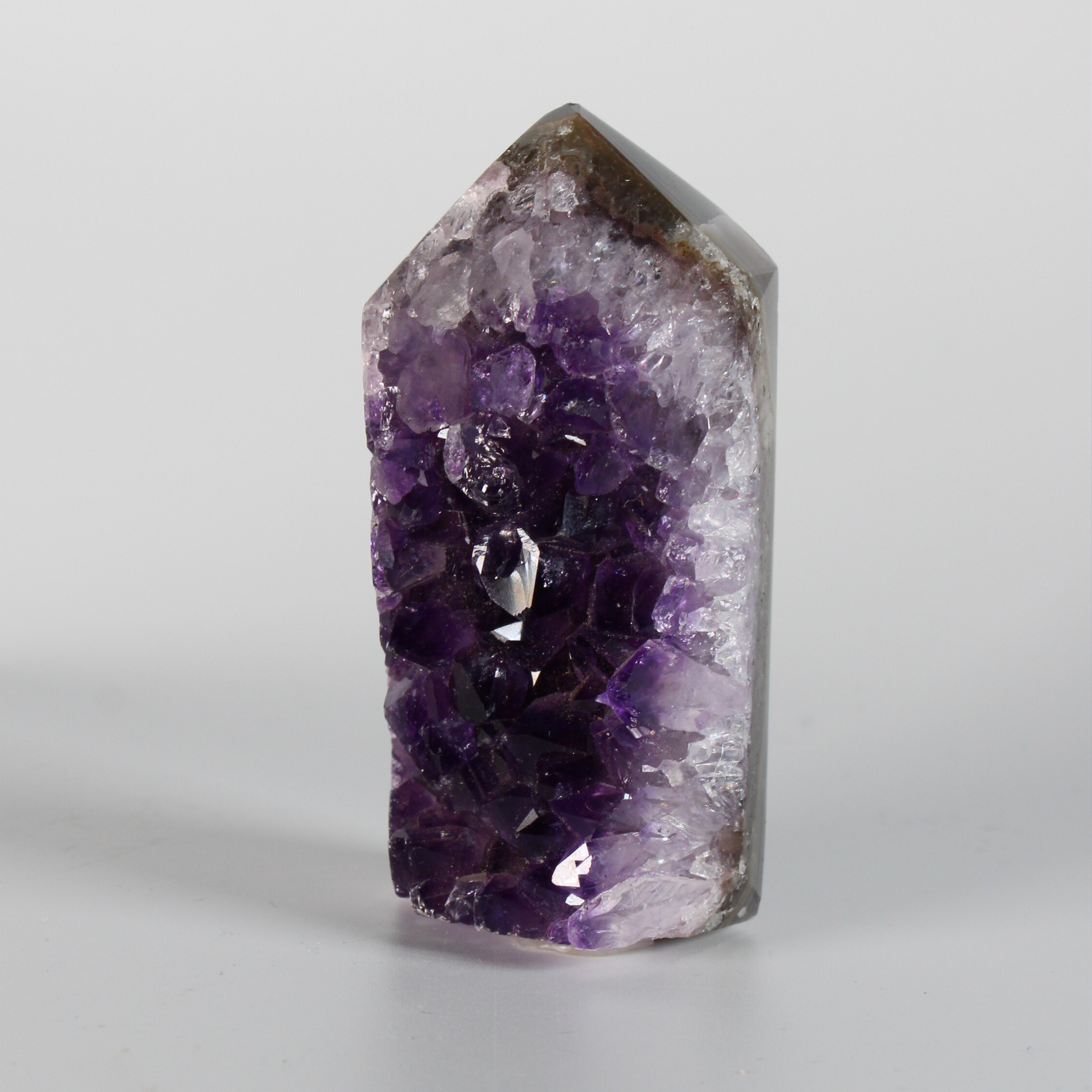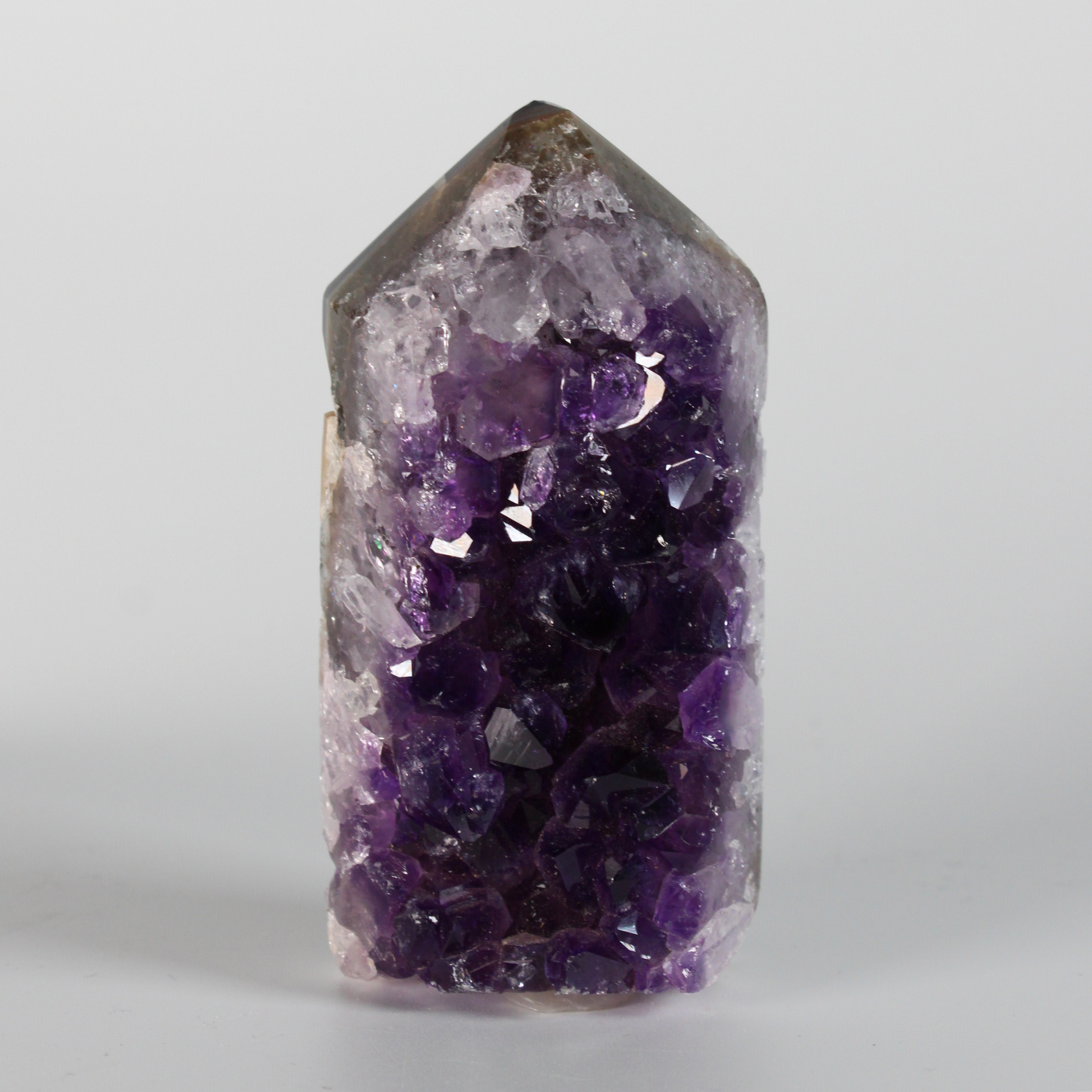 De amethist cluster punt werkt sterk op het kruinchakra en het derde oog en ondersteunt bij het kalmeren van gedachten, het loslaten van stress en het verdiepen van meditatie en intuïtieve inzichten. Dankzij de puntvorm wordt energie gericht en versterkt, wat deze steen zeer geschikt maakt voor energetisch werk, intenties zetten en het reinigen en beschermen van ruimtes.