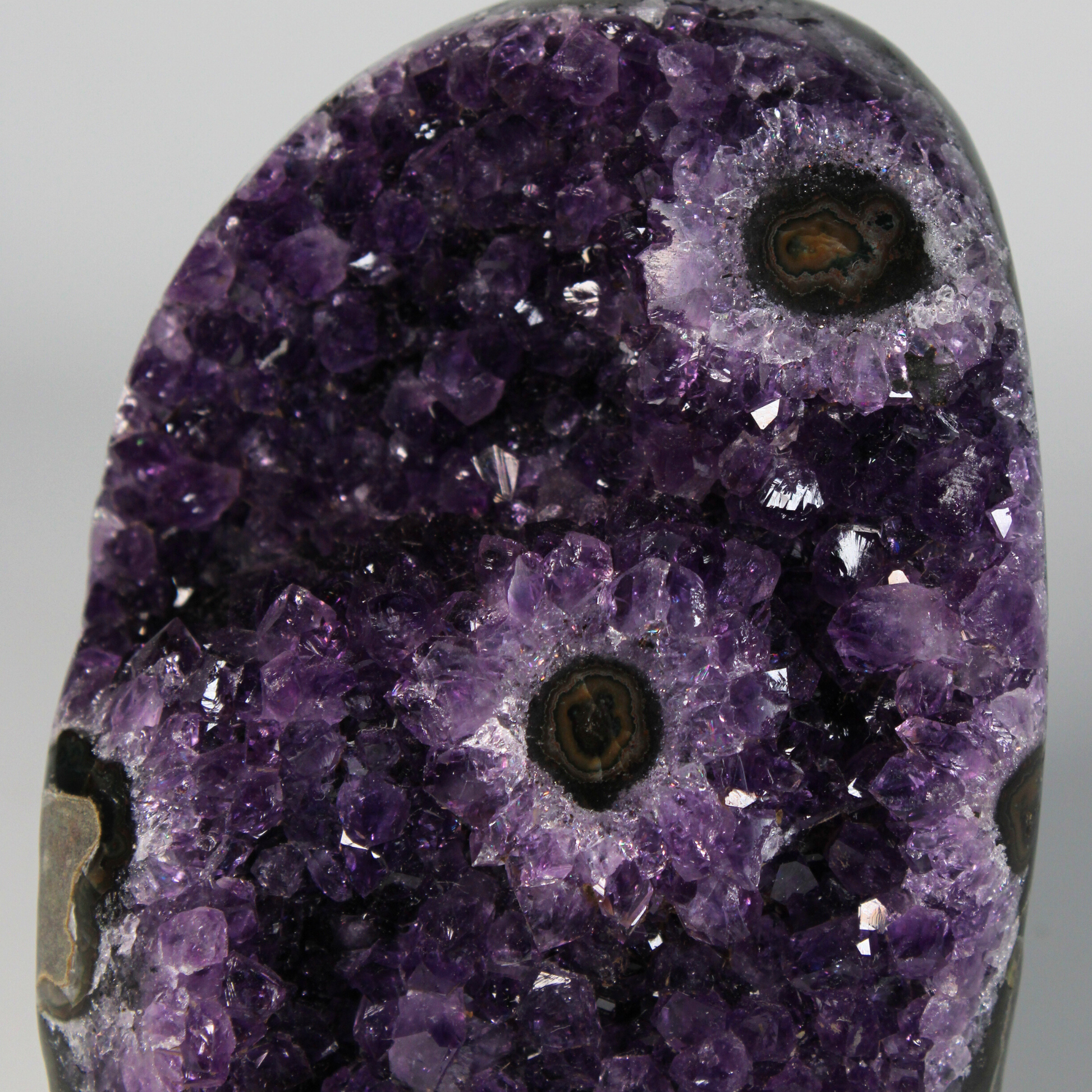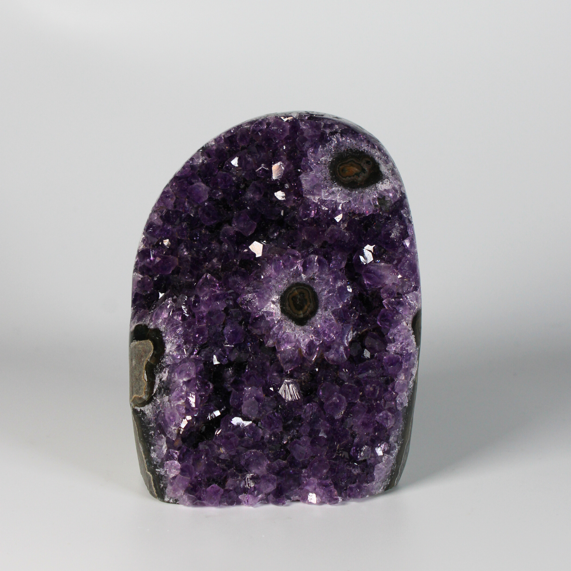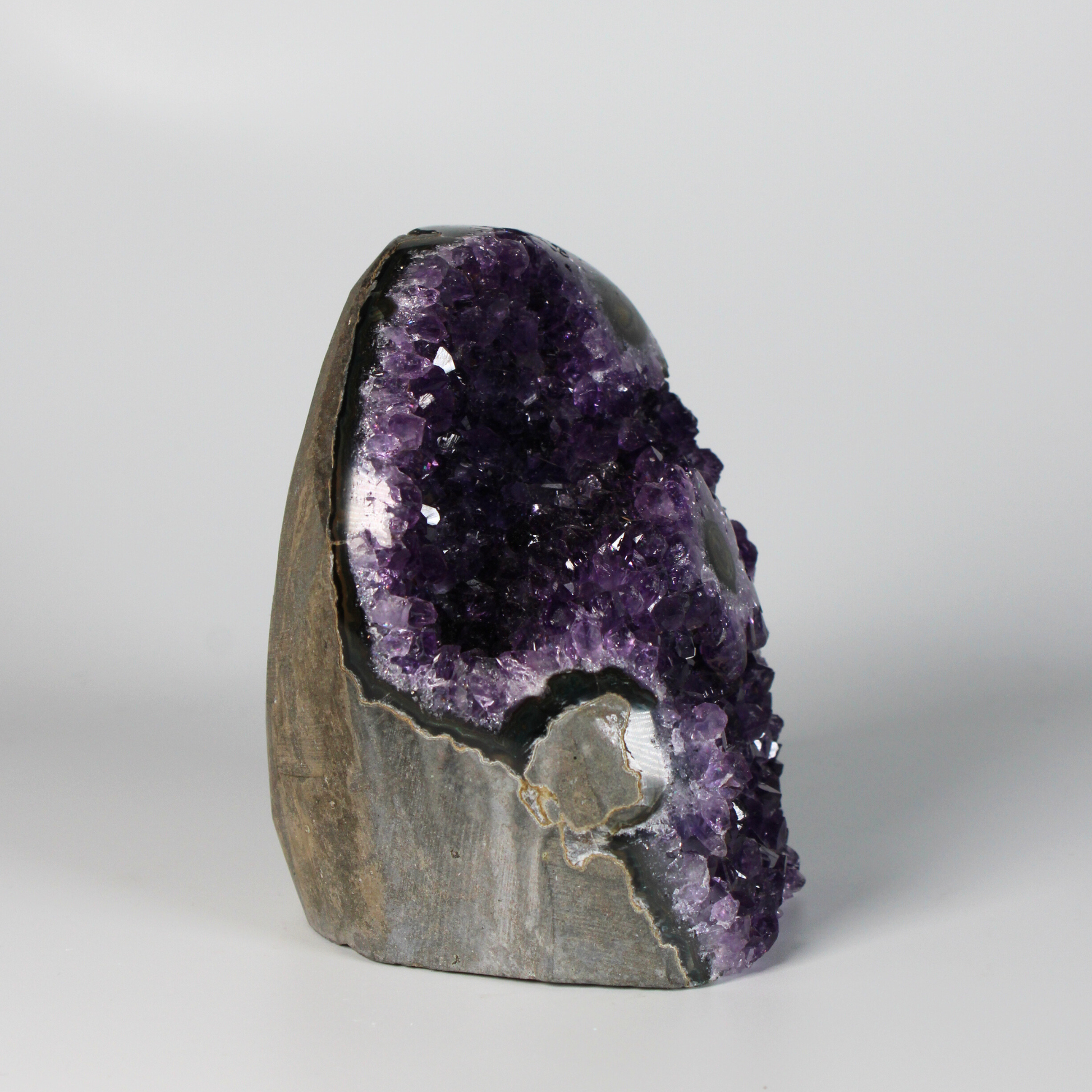 De Uruguay Amethist werkt krachtig op het kruinchakra en het derde oog en helpt bij het tot rust brengen van de geest, het loslaten van spanning en het verdiepen van meditatie en intuïtieve inzichten. Deze steen biedt sterke energetische bescherming en ondersteunt bij het creëren van een serene, zuivere energie in de ruimte.