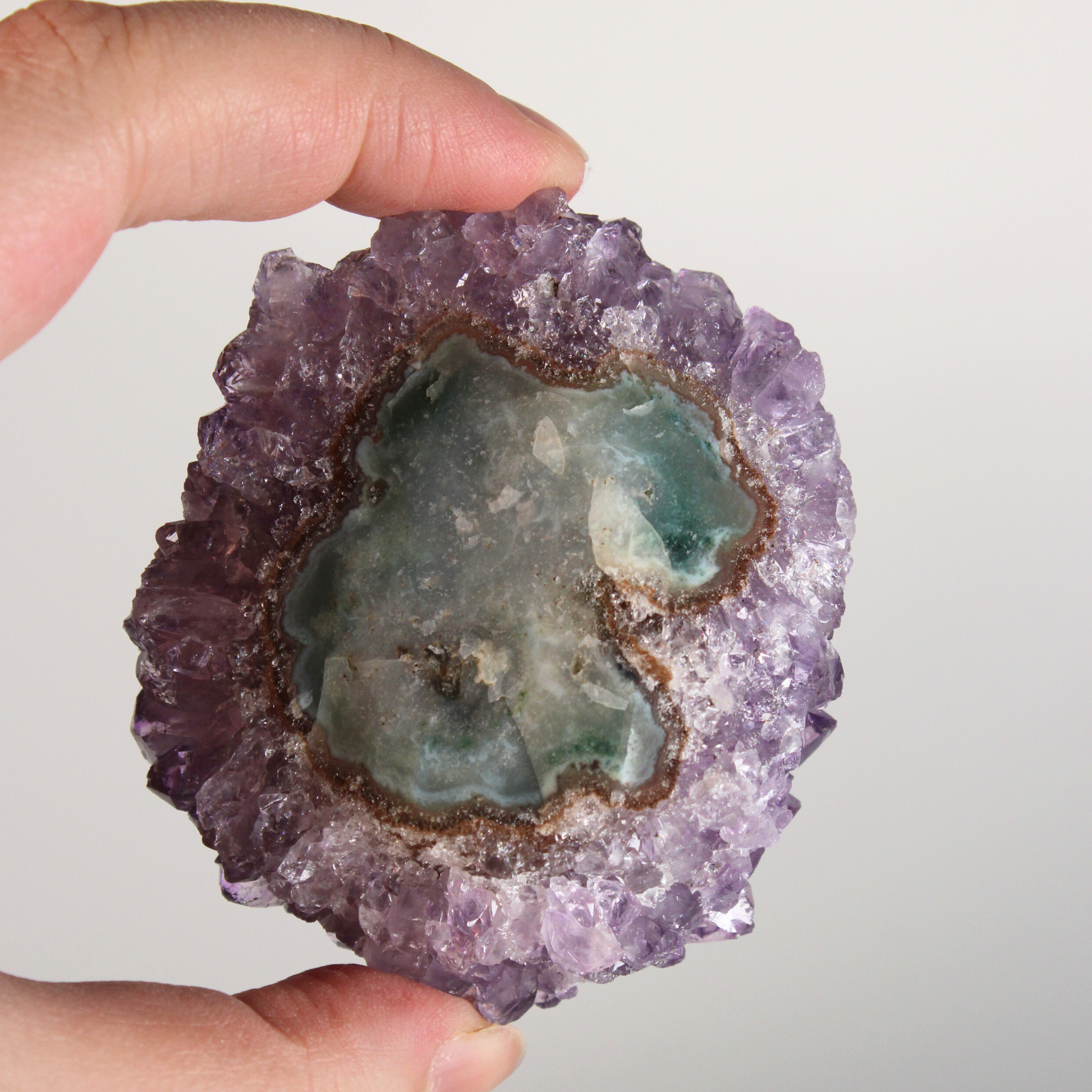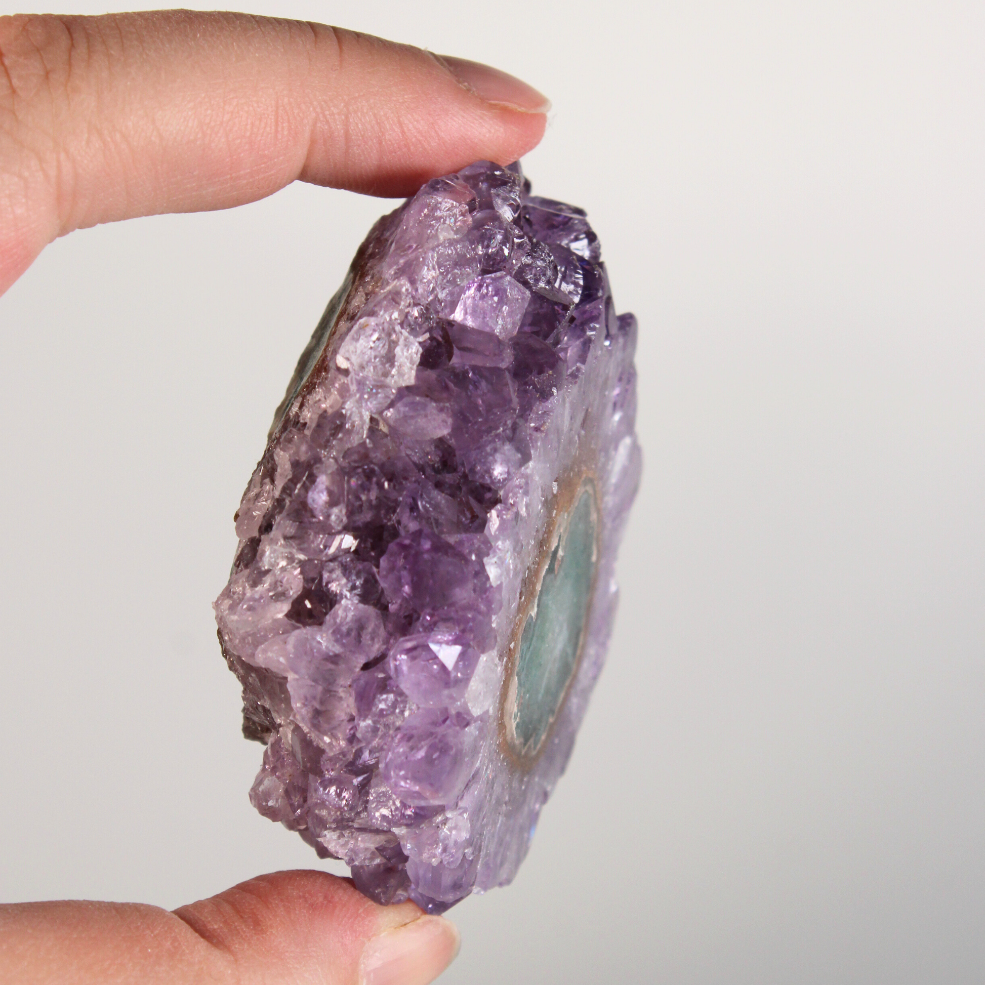 Deze amethist nodigt uit tot innerlijke stilte en vertrouwen, helpt bij het kalmeren van een overactieve geest en ondersteunt bij het doorbreken van oude patronen. Tegelijkertijd creëert hij een beschermend veld dat negatieve invloeden verzacht en je helpt stevig in je eigen energie te blijven staan.