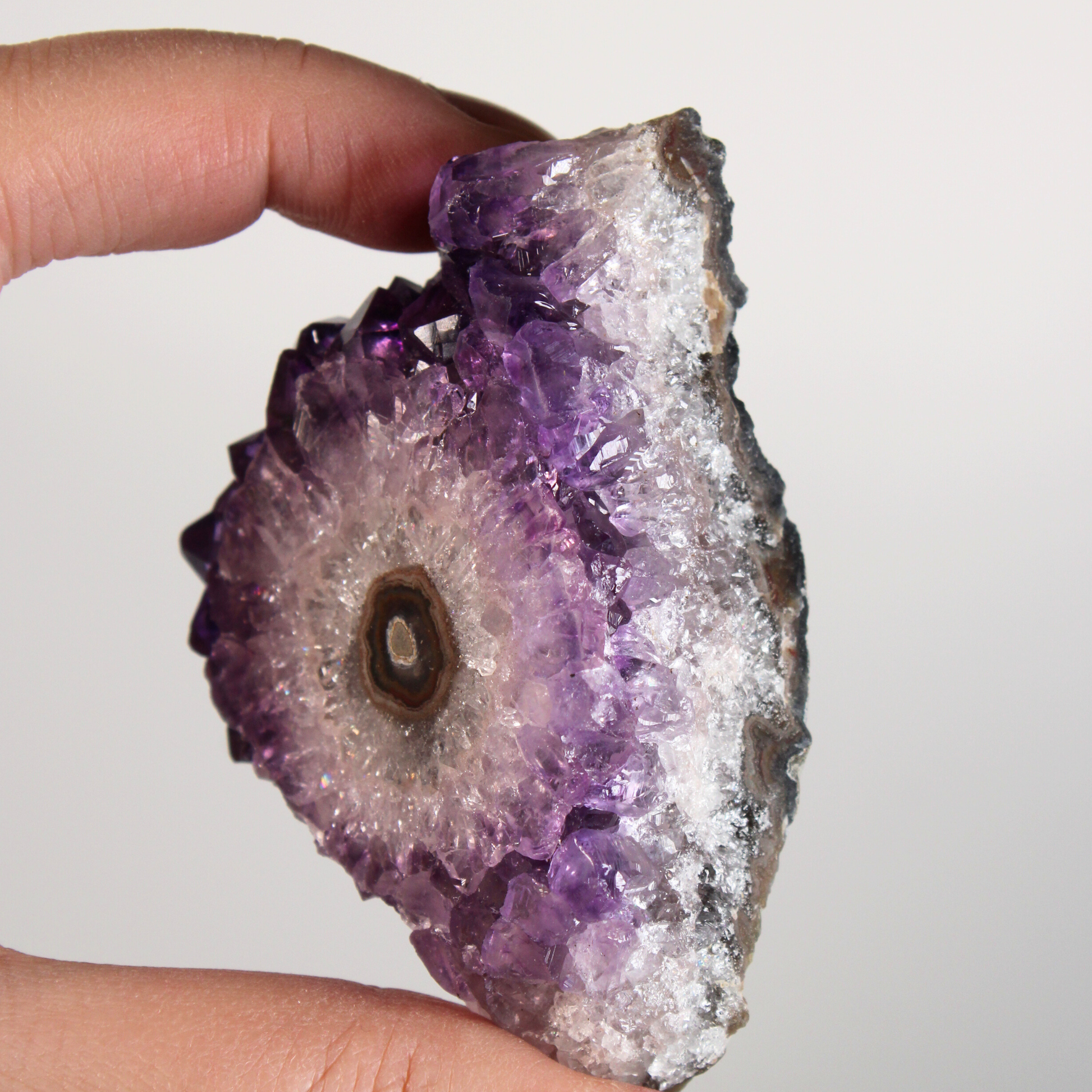 Elke amethist stalactiet is uniek in vorm, tekening en energie. Door zijn natuurlijke vorming en herkomst uit Uruguay is dit een zeldzaam en krachtig stuk, ideaal voor wie op zoek is naar verdieping, bescherming en bewuste groei.