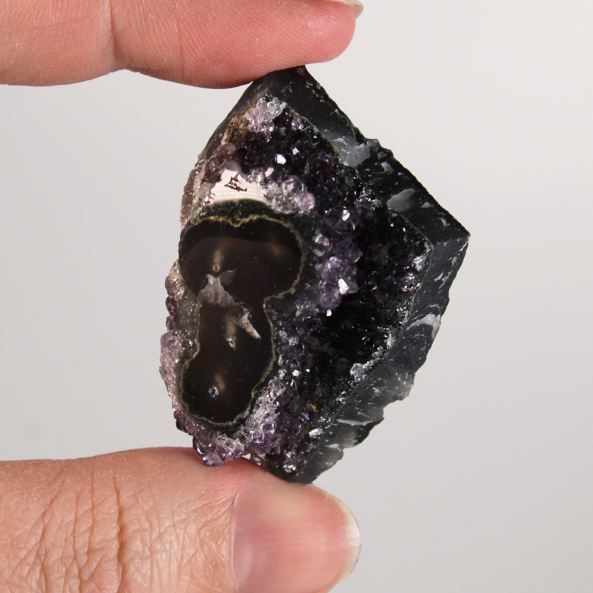 Deze amethist nodigt uit tot innerlijke stilte en vertrouwen, helpt bij het kalmeren van een overactieve geest en ondersteunt bij het doorbreken van oude patronen. Tegelijkertijd creëert hij een beschermend veld dat negatieve invloeden verzacht en je helpt stevig in je eigen energie te blijven staan.