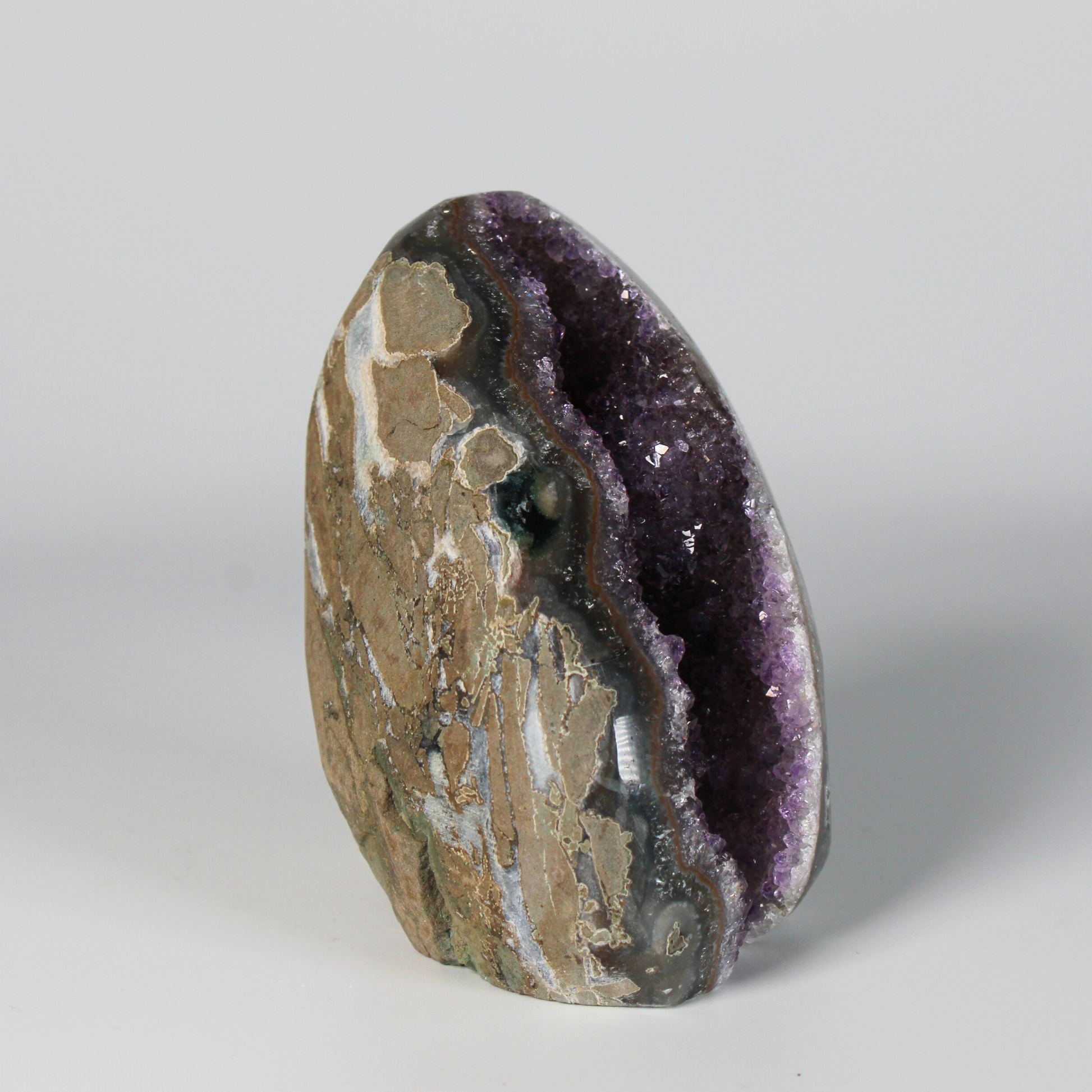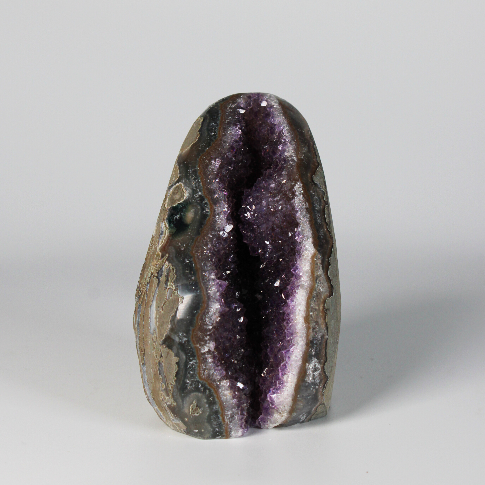Dankzij het standvlak is deze amethist perfect om neer te zetten in een woonruimte, praktijkruimte of meditatieplek. Hij zuivert de energie van de ruimte, beschermt tegen negatieve invloeden en draagt bij aan een serene, harmonieuze sfeer.