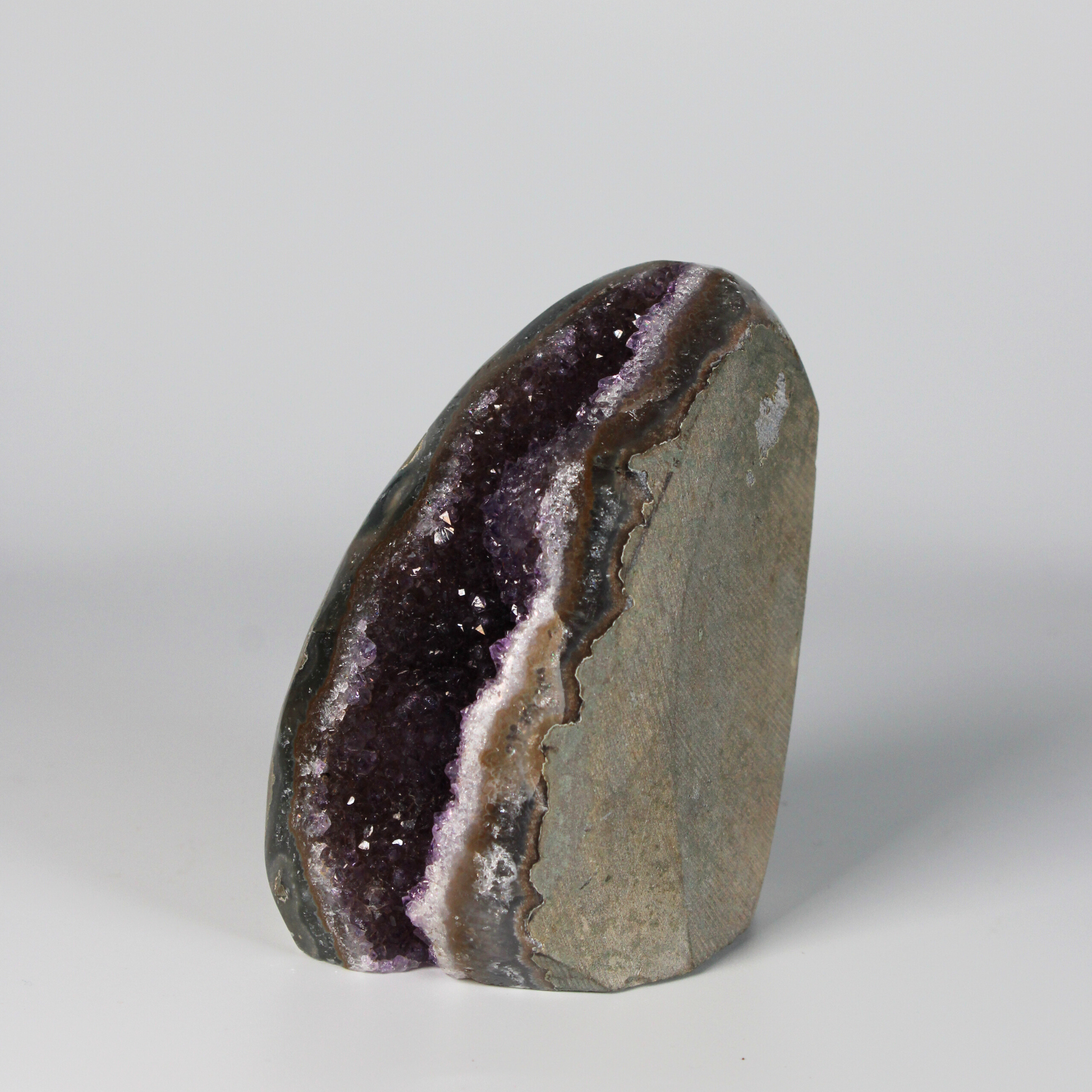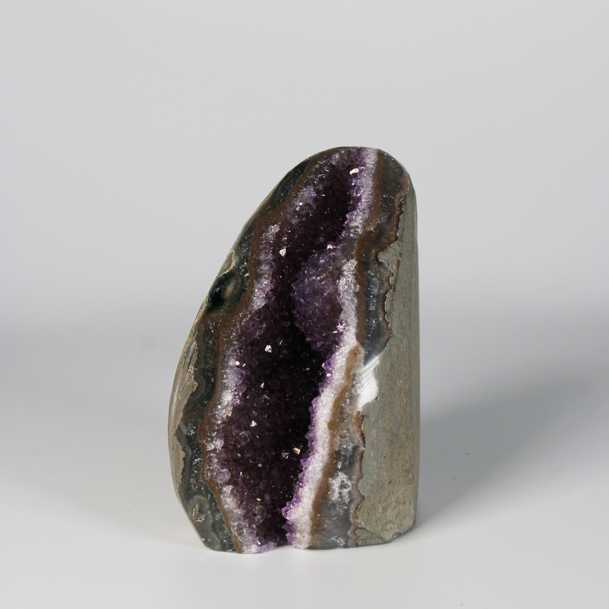 Elke Amethist Standvlak uit Uruguay is volledig uniek door zijn natuurlijke kristalstructuur en diepe kleur, een indrukwekkend natuurkunstwerk met een sterke, maar liefdevolle energie.