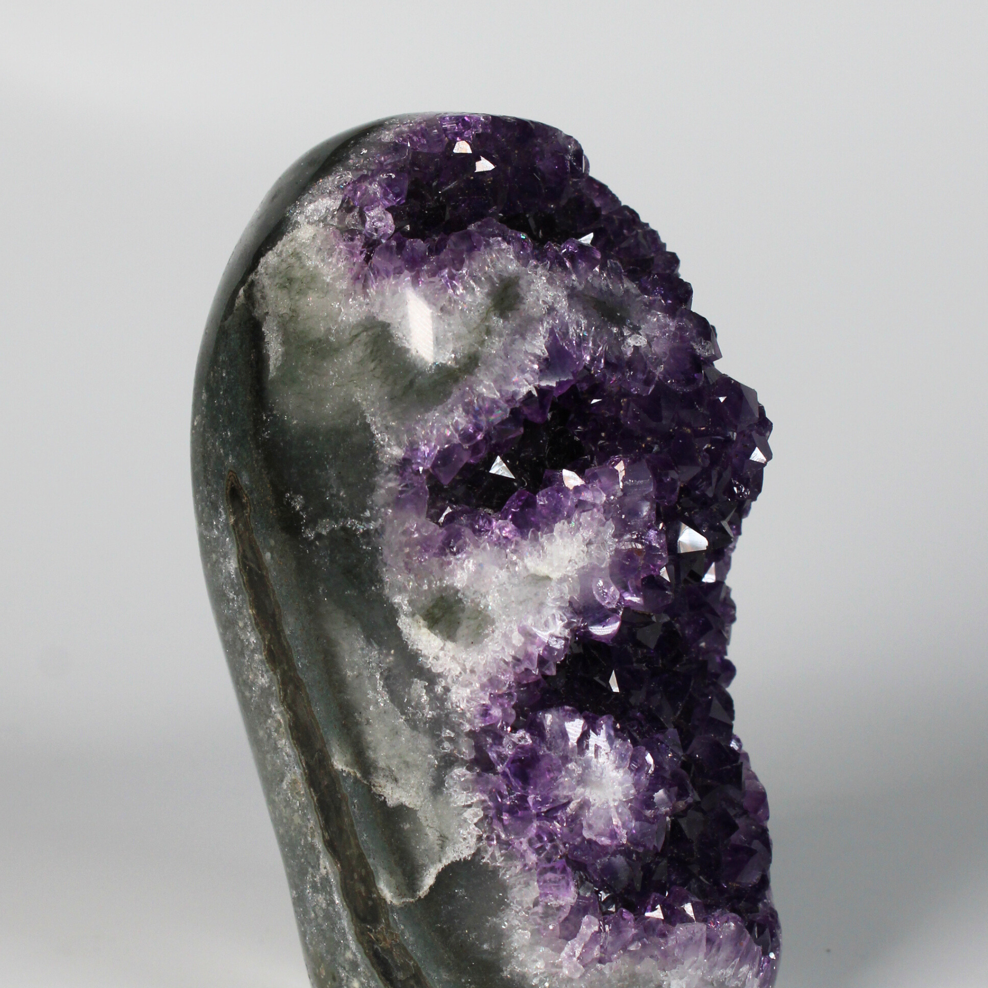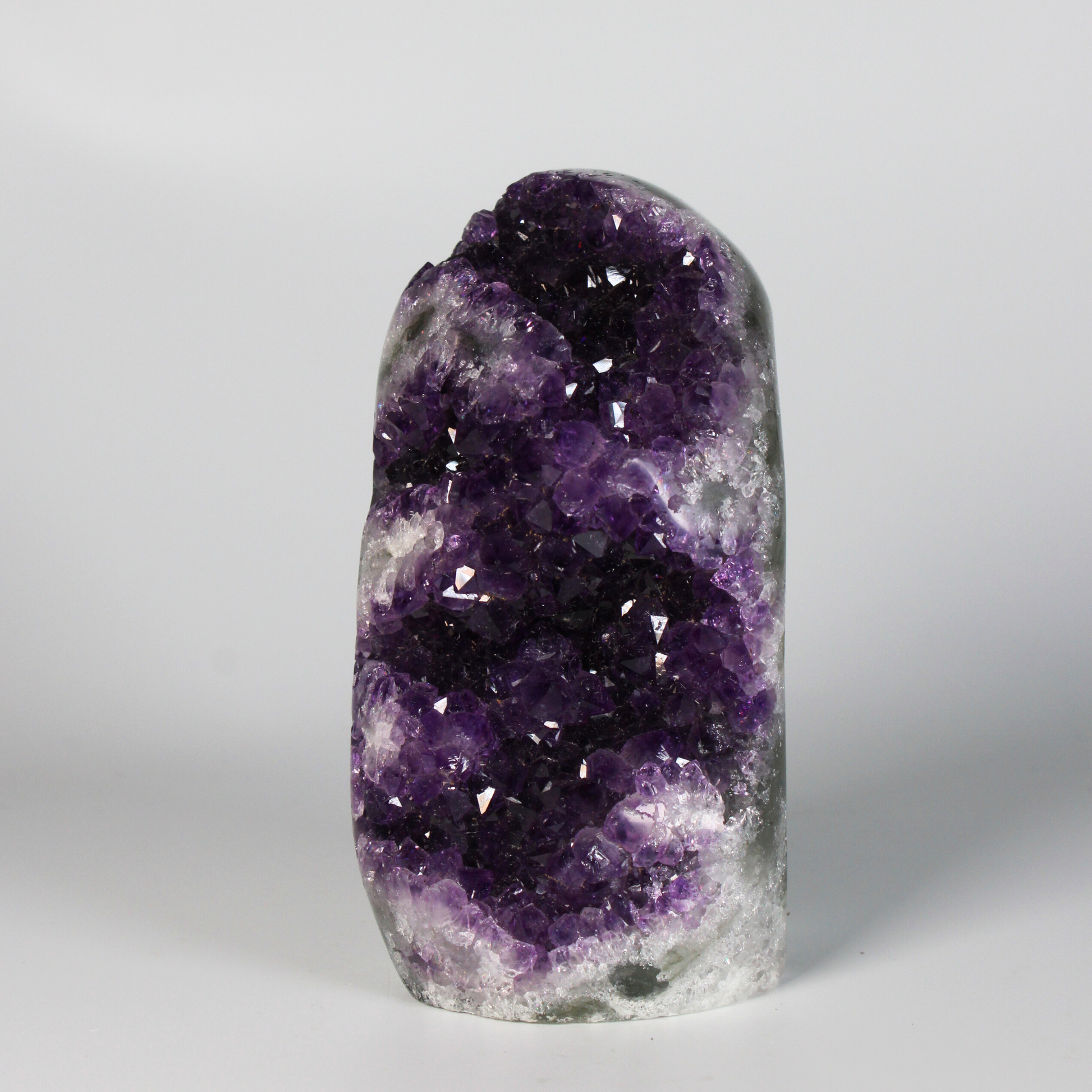 Elke Amethist Standvlak uit Uruguay is volledig uniek door zijn natuurlijke kristalstructuur en diepe kleur, een indrukwekkend natuurkunstwerk met een sterke, maar liefdevolle energie.
