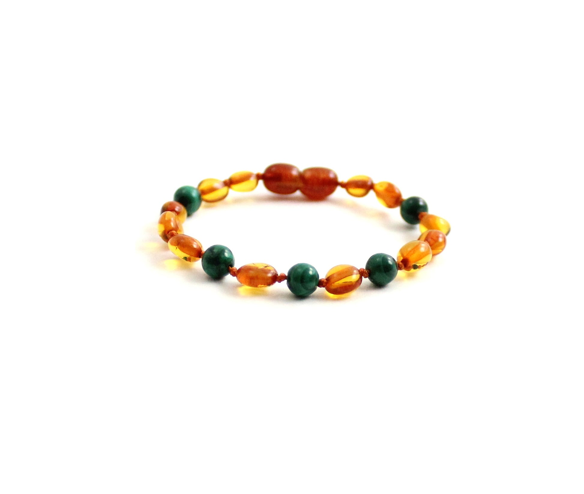 Barnsteen armband cognac nuggets met Afrikaanse Jade.