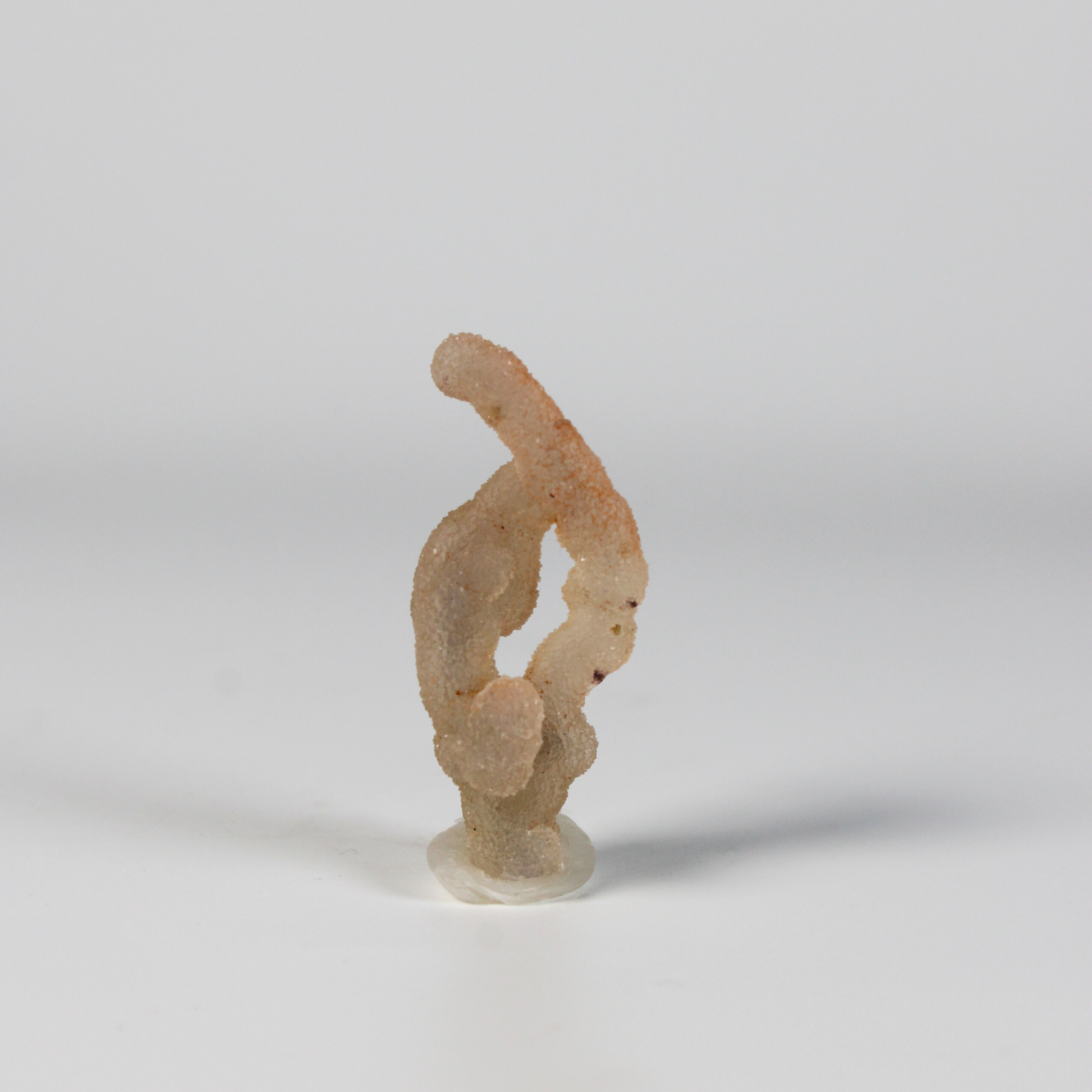 Chalcedoon stalactiet is een bijzondere verschijningsvorm van chalcedoon, waarbij het mineraal in lagen is afgezet rond een kern en zo stalactiet-achtige structuren vormt. Deze formaties ontstaan over lange tijd door druppelende mineraalrijke vloeistoffen, wat zorgt voor zachte banden, bloemachtige patronen en een organisch uiterlijk. Elk stuk is volledig uniek.