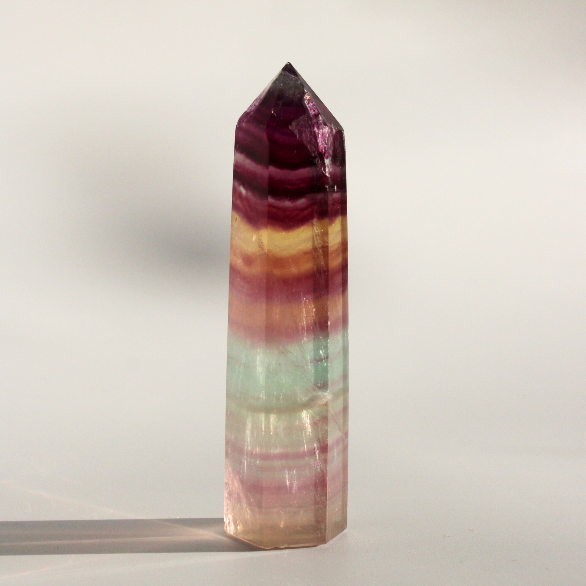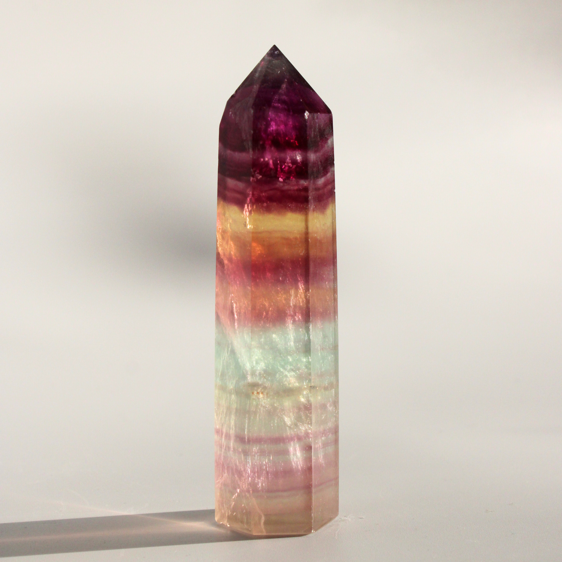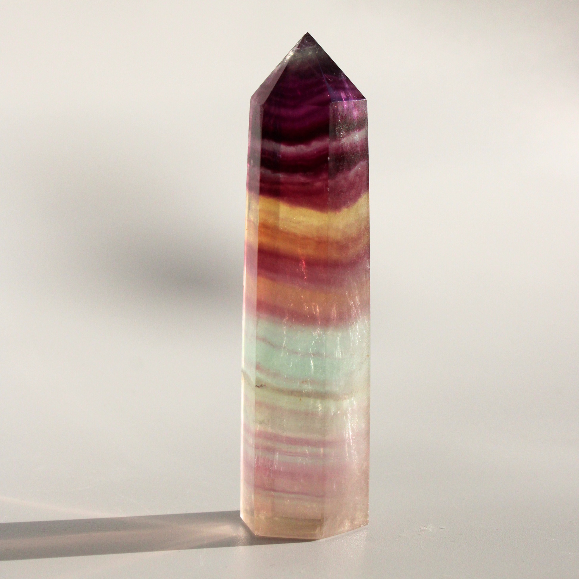 Fluoriet werkt beschermend tegen negatieve energieën en helpt bij het herstellen van emotionele balans. De verschillende kleuren versterken elkaar en ondersteunen het loslaten van verwarring en spanning, waardoor je met meer helderheid en vertrouwen in je eigen energie blijft staan.
