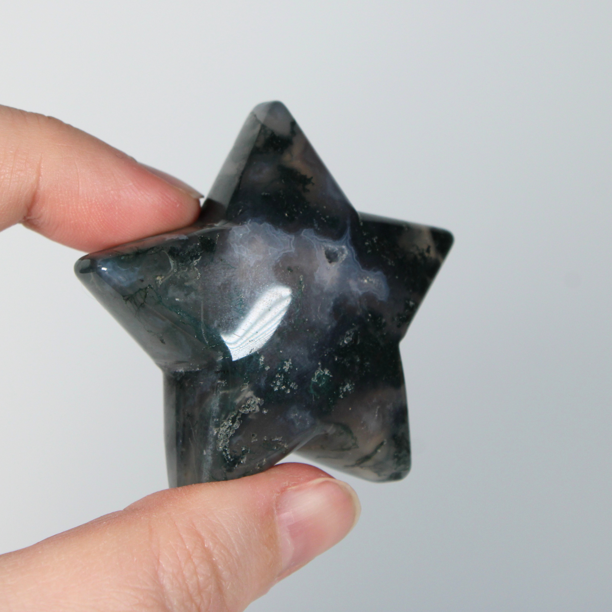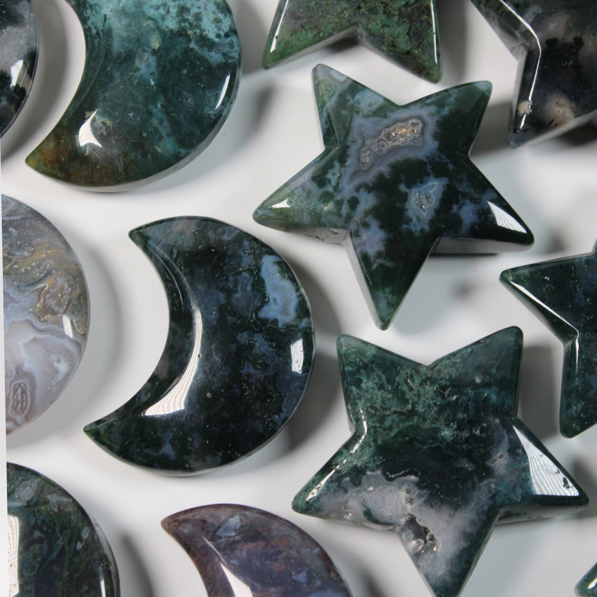 Mosagaat is een aardende en kalmerende steen die helpt bij het vinden van innerlijke rust en emotionele stabiliteit. Deze steen ondersteunt je bij het loslaten van spanning, negatieve patronen en zorgen, waardoor je weer in balans kunt komen.