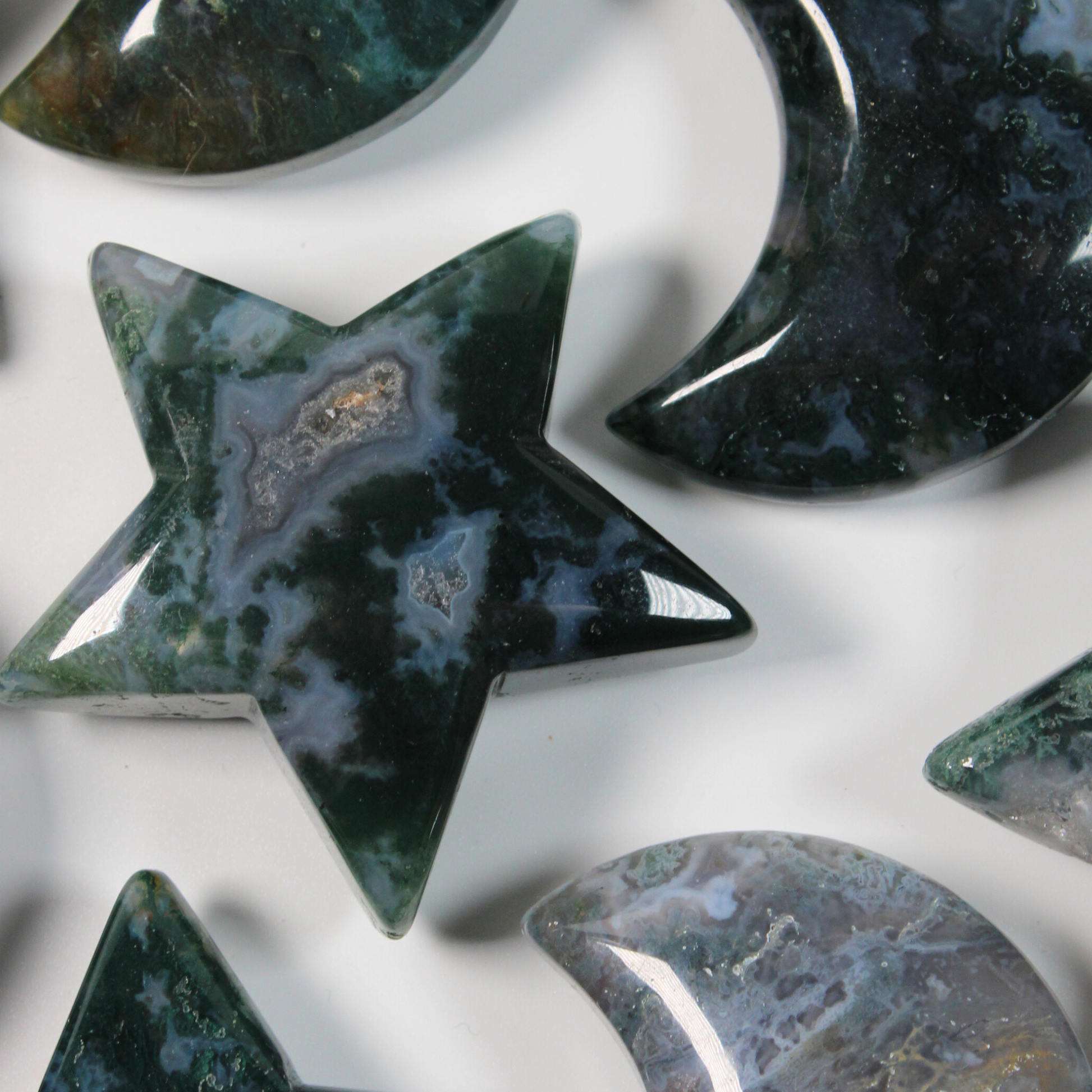 Unieke handgeslepen ster en maantjes.