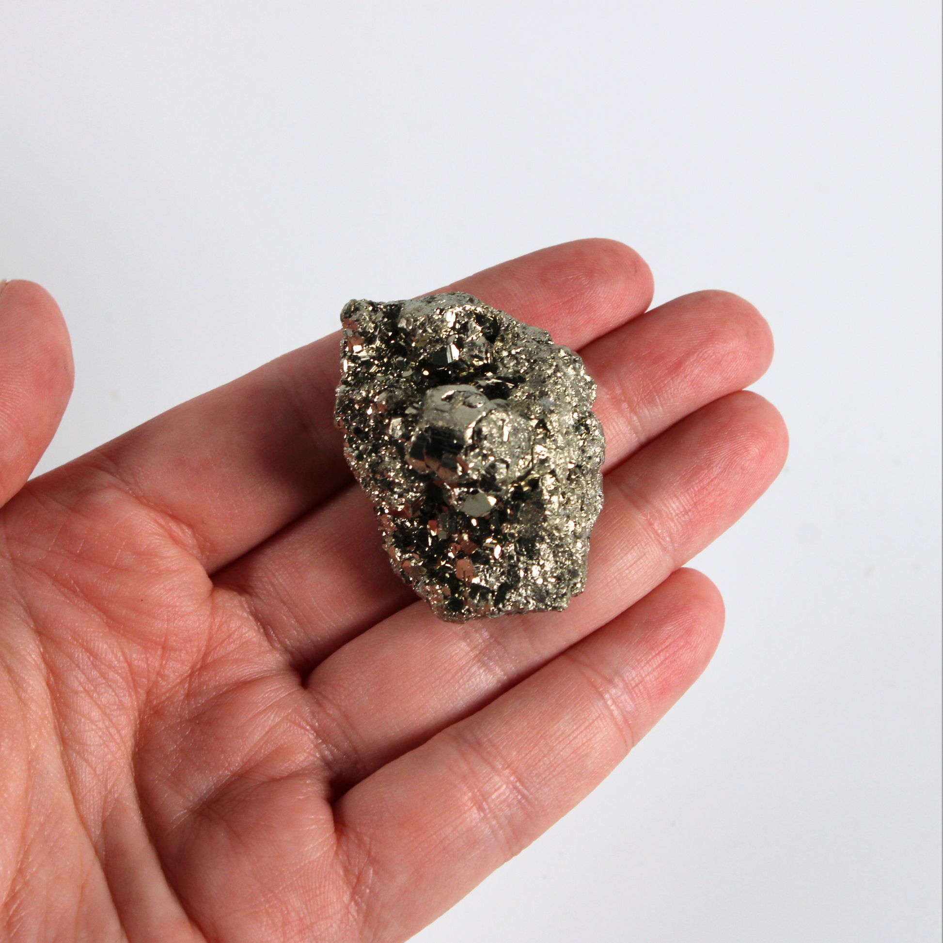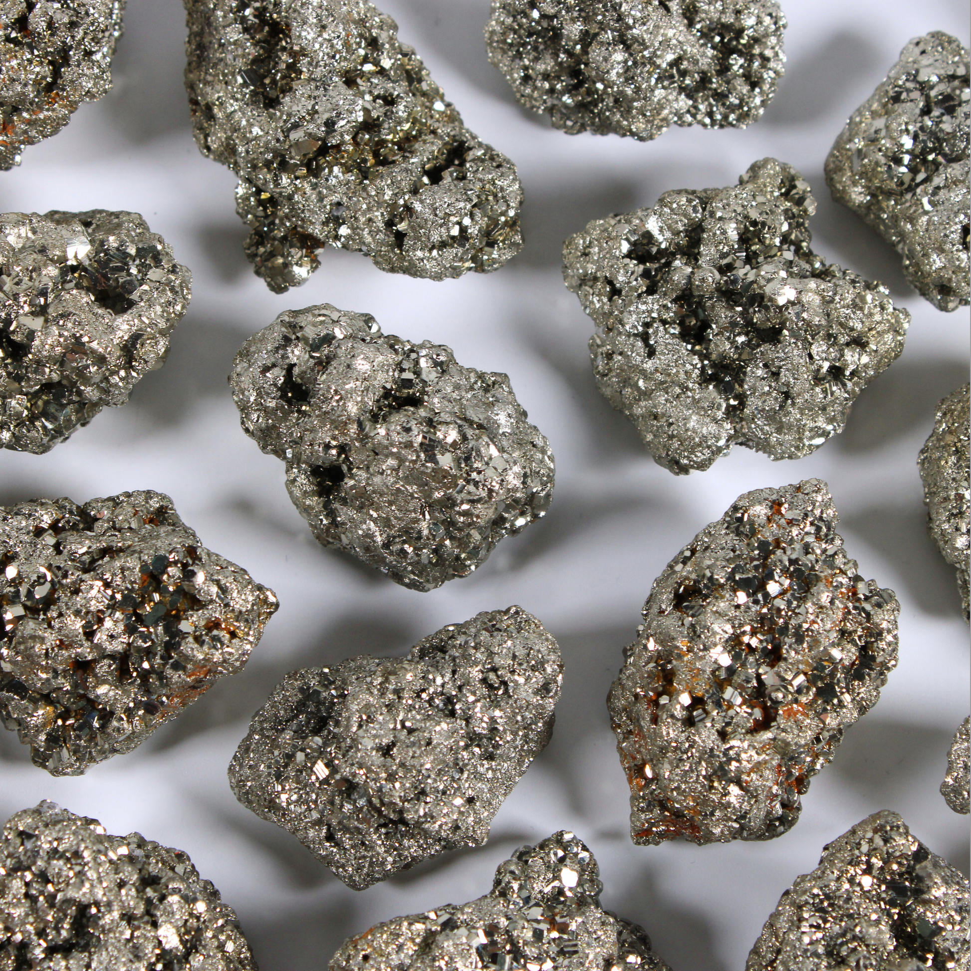 Pyriet staat bekend om zijn krachtige, metaalachtige glans en strakke kristalstructuren. Deze mooie kwaliteit pyriet onderscheidt zich door zijn heldere goudkleur, scherpe kristalvorming en sterke uitstraling. Elk stuk is volledig natuurlijk en uniek, met een karaktervolle vorm die de robuuste energie van deze steen benadrukt.