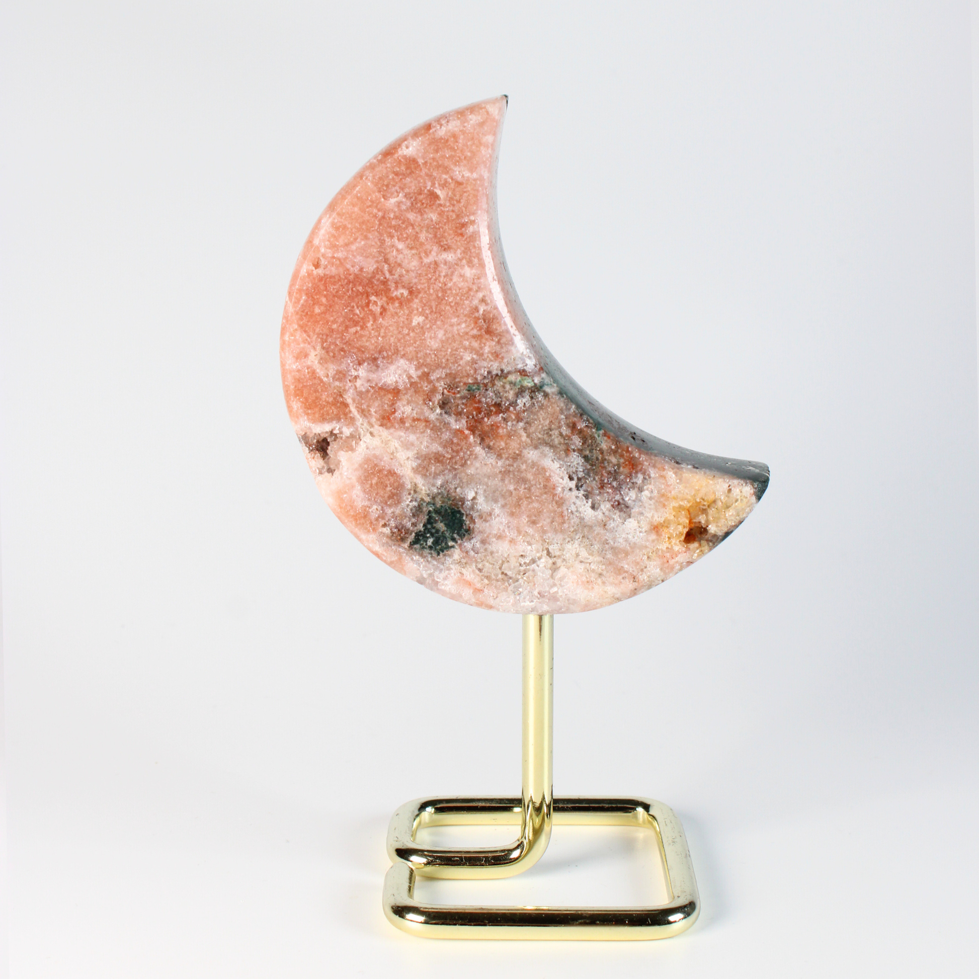 Deze unieke combinatie van roze amethist in maanvorm waar mosagaat in groeit brengt zowel emotionele rust als innerlijke balans. Roze amethist opent je hart, bevordert zelfliefde en helpt je zachter naar jezelf en anderen te zijn. Mosagaat ondersteunt je bij het vinden van stabiliteit en evenwicht, en helpt je bij het loslaten van spanning en negatieve patronen.